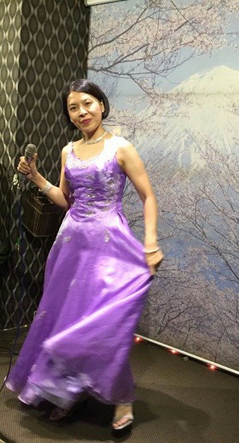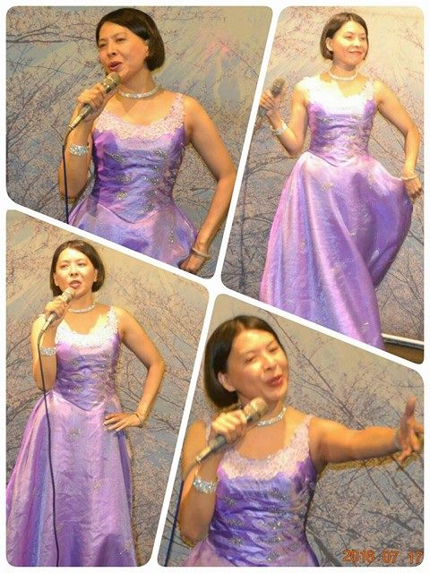 7/17那天我又去"服裝表演"了,呵呵呵…….,每回日本歌聯誼總是我最開心的時刻,不僅可以唱歌紓壓,更可以穿漂亮的衣服亮相,就感到整個月的壓力都釋放了。 我常常跟我的學生麗麗聊天,她大我一歲,我們"彈琴,也談心情;談家庭,也談事情",我記得我跟她聊過,內容是這樣的「麗,我小時候,就想像著,有一天自己長大了,可以穿著漂亮的禮服上台表演,因為很羨慕電視上穿著華麗晚禮服演唱的歌星,感覺漂亮極了!」「好神奇喔!那你美夢成真了耶!」「是ㄋㄟ,開心。」 有些禮服是我自己的,有些是朋友知道我要去日本歌聯誼借我穿的,目的是比較一下,兩個人穿的差別在哪裡?也有些是學生暫借的,因為她們很少有機會穿,而我就變成了她們的實驗品,多方嚐試的結果,我的骨架暫時還撐得起來,穿起來不會太難看,否則,真是對朋友抱歉了呢! 謝謝張金城大哥,陳登鏞大哥,許麗雪姐姐每次都幫我拍美麗的照片,讓我留下美好的回憶,我的一個轉身,我的一顰一笑,我的裙擺搖搖,在在都是我心情的寫照,,儘管每張都很類似,卻都記載得鉅細靡遺,不捨刪除任何一張,容我留下它們全部,在以後,我每次看"它們"的時候就會想起我當時的心情。105.7.20